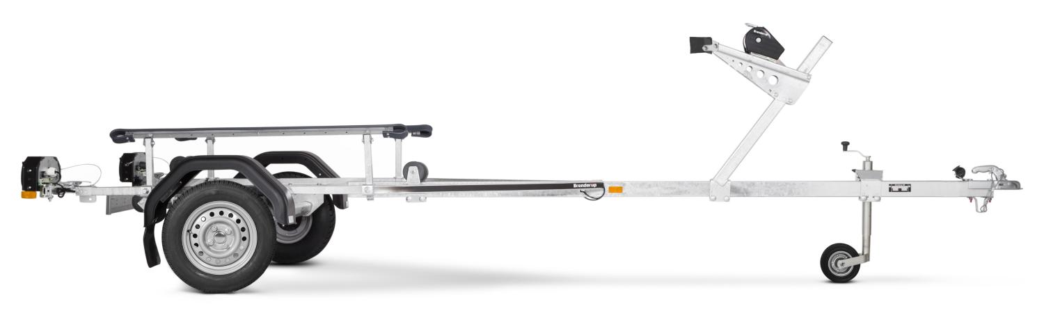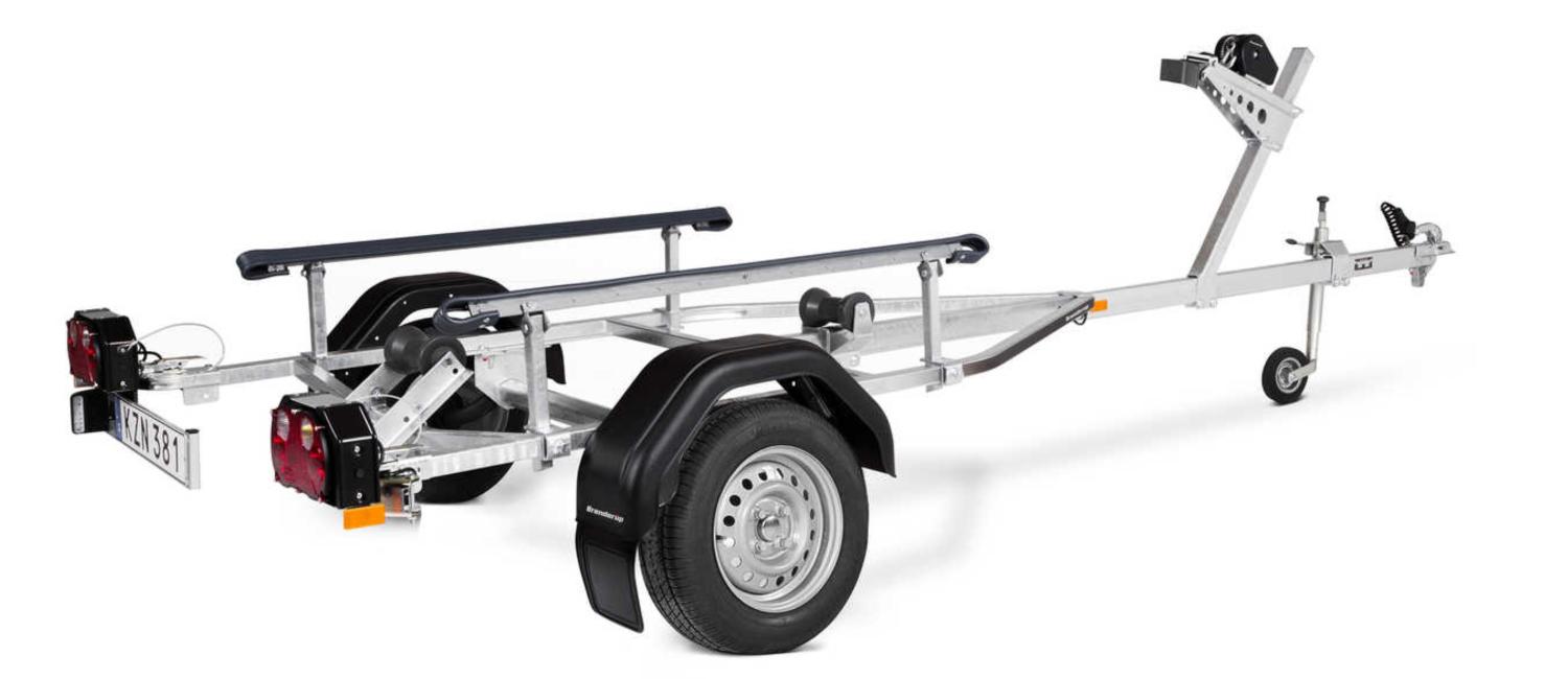 Obromsad trailer med skenor för mindre båtar upp till 15 fot. Tippbar bakre vagga och justerbara skenor för enkel anpassning till din båt. Varmgalvaniserat chassi för lång hållbarhet. Elen är helt skyddad i båttrailerns chassi. Vattentäta hjullager förlänger livstiden. Helskyddad vinsch och vinschtorn som är enkelt att anpassa, vinschtornet är även utrustat med en extra säkerhetsvajer för användning vid transport. Smidig, vikbar och vattentät belysning vilket gör både av- och pålastning väldigt enkel. Båttrailern på bilden kan vara extrautrustad. Två vattentäta och vikbara ljusenheter Multijusterbart vinschtorn
