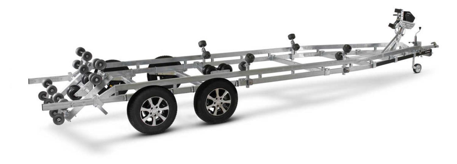 Båtupptagningsvagn för båtar upp till 26 fot. Utrustad med heavy duty superrullsvagga, justerbara förstärkta kölrullar och dubbla sidorullar av X-line-kvalitet för enkel anpassning till din båt. Varmgalvaniserat chassi för lång hållbarhet. Vinsch och vinschtorn som är enkelt att justera, vinschtornet är även utrustat med en extra säkerhetsvajer för användning vid transport. Båttrailern på bilden kan vara extrautrustad. Heavy duty super soft kölrullar Vinsch med skyddskåpa och multijusterbart vinschtorn