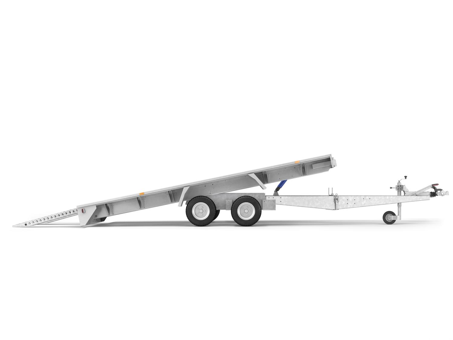 Transportera din bil på ett bekvämt, tryggt och säkert sätt. Autotransportern har tippfunktion med högtrycksgasdämpare och är lämplig för t.ex. bilverkstäder eller bilentusiaster. Kombinationen tipp och ramp (standard) ger en låg lastvinkel, när du lastar ditt fordon. Tack vare de breda ramperna på plattformen och den låga lastvinkeln, kan både stora och små fordon lastas på släpvagnen. Det breda sortimentet av tillbehör gör det möjligt att utrusta autotransportern så den uppfyller dina transportbehov. Vagnen på bilden kan vara extrautrustad. Förbättrade köregenskaper tack vare att släpet följer bilen bättre Utrusta med aluminium- eller plywoodgolv (valfritt) för att göra släpet mer användbart