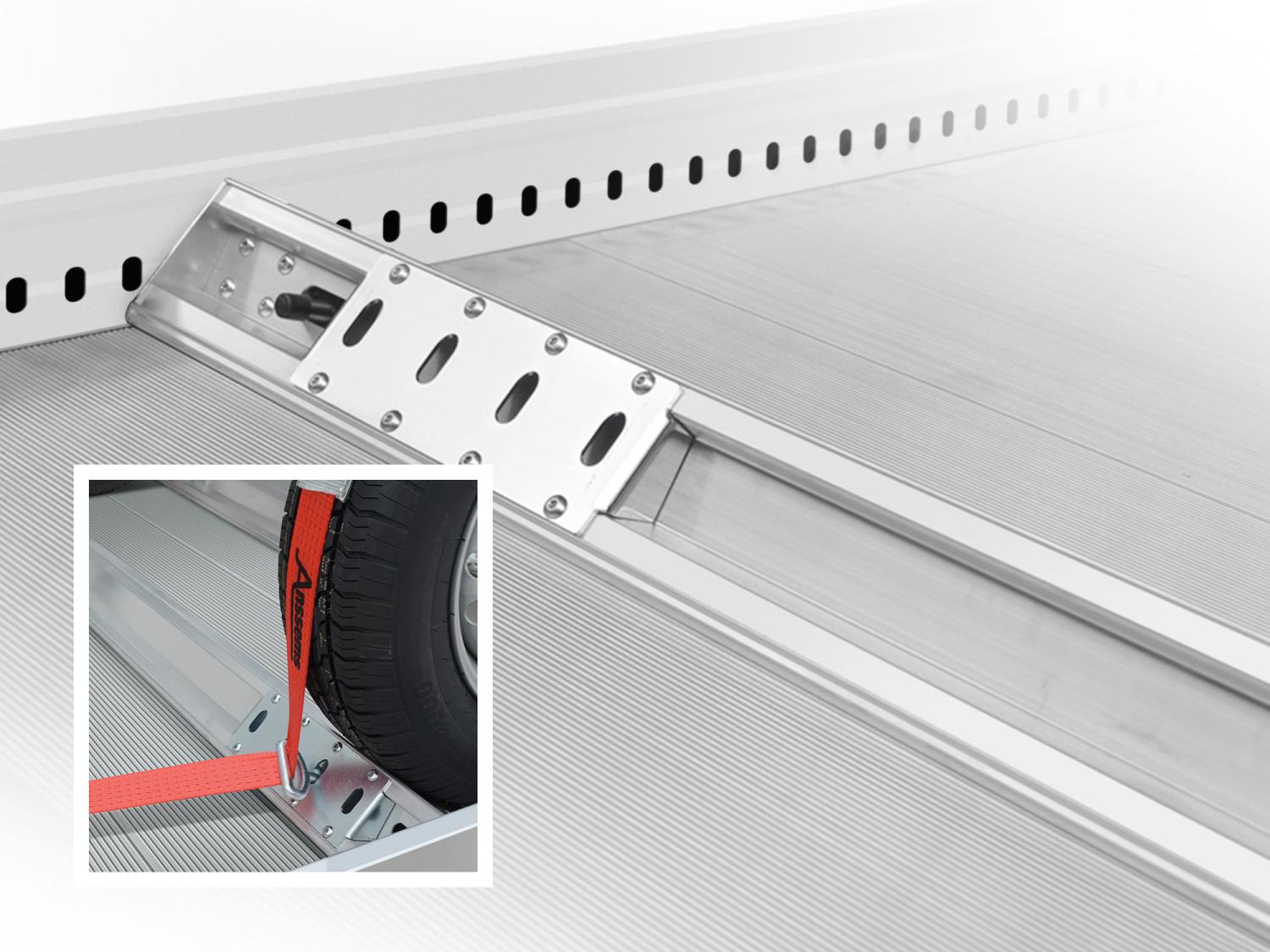 Hjulstopp för en smidig lastning och en säker lastsäkring. Förberedd för att använda AMT-hjulsurrningssystem